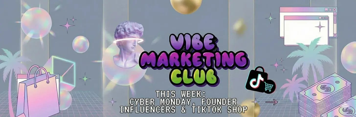 What Cyber Week taught us about creative, offers, and why vibes alone won't cut it.GM Marketers 👋Welcome to the new era of Vibe Marketing Club. We took a few weeks off, touched grass, studied the game, and came back with a newsletter that’s actually worth your inbox real estate.Every week, we’re bringing you the marketing trends, AI tools, and brand plays that are too good to gatekeep. No fluff. No “10 tips to grow your LinkedIn.” Just the stuff that makes you text your coworker “yo you gotta see this.”Let’s get into it.